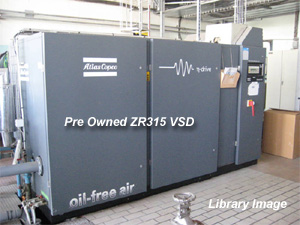 1 x Atlas Copco Pre owned ZR315 VSD compressor available YOM 2003 model This compressor can be sold with a full overhaul carried out on the motor and gearbox.